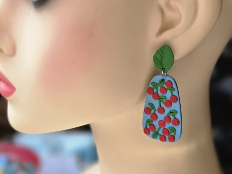 Completează-ți ținutele cu un accesoriu plin de farmec: cercei cu cireșe din lut polimeric, perfecți pentru un look fresh, feminin și jucăuș. Acești cercei handmade cu cireșe sunt realizați cu grijă la detalii, fiecare piesă fiind unică și plină de personalitate.