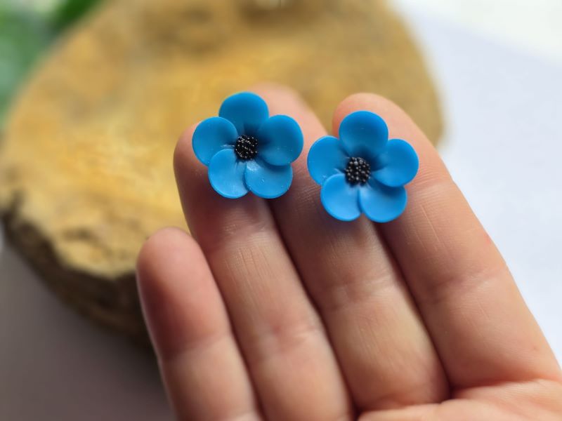 Completează-ți look-ul cu acești cercei floare albastră pe lob, un accesoriu fin și feminin, perfect pentru orice ocazie. Realizați manual, acești cercei handmade din lut polimeric impresionează prin detalii delicate și nuanța calmă de albastru, inspirată din frumusețea naturii.