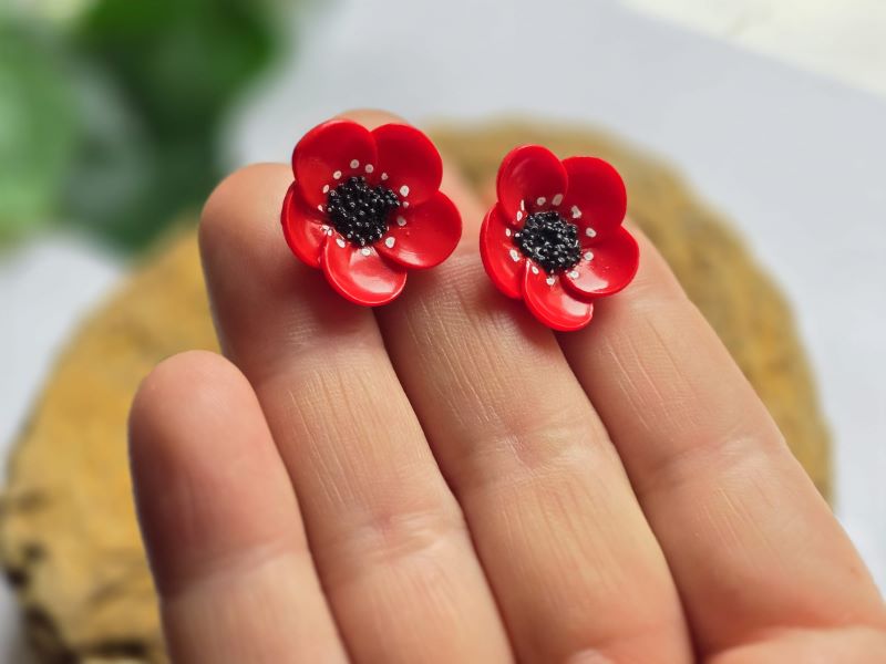 Adaugă un plus de rafinament și culoare ținutelor tale cu acești cercei floare roșie pe lob, creați pentru a evidenția frumusețea naturală și stilul feminin. Delicați și eleganți, acești cercei handmade din lut polimeric sunt perfecți pentru femeile care iubesc accesoriile subtile, dar de efect.